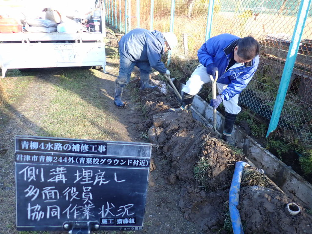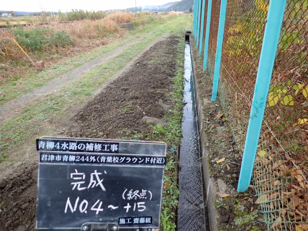 青柳 青葉高校グランド付近用水路の補修を実施しました